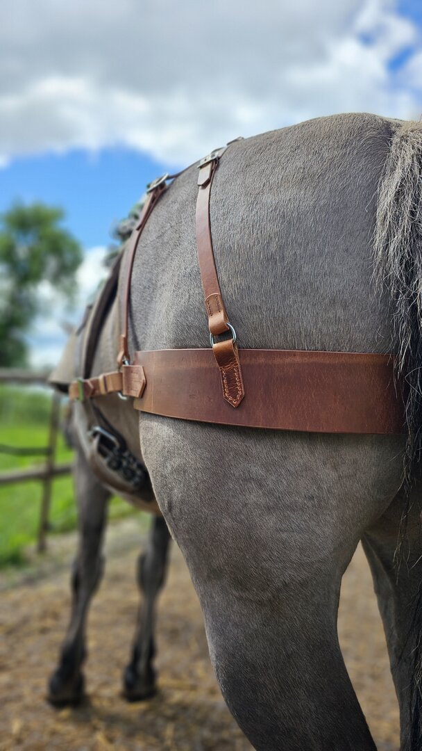 Die Geschirre werden von Hand mit der sehr stabilen Sattlernaht hergestellt. Für die Herstellung wird hochwertiges, pflanzlich gegerbtes Geschirrleder verwendet, das durch spezielle Tauchfettung und Verarbeitung extrem reißfest und widerstandsfähig ist.