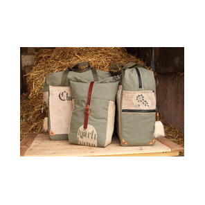 Packtaschen werden standardisiert in zwei Größen und zwei verschiedenen Farben gefertigt.