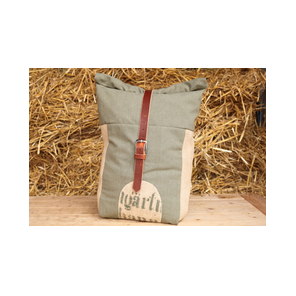 Auf der Rückseite befinden sich in der Länge verstellbare Seilschlaufen zum Einhaken am Sattel. Eine Kunststoffplatte und ein Lederaufsatz schützen den Stoff auf der Rückseite vor Reibung.