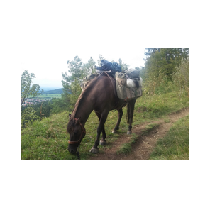 Zum Wandern mit dem Packtier, Pferd, Muli, Esel gibt es passend zu den Traveller Packsattel Modellen das nötige Zubehör wie Packtaschen, Packkoffer, Satteltaschen, anatomische Sattelunterlagen Pad aus Schafwollfilz, Vorder- und Hintergeschirre aus fetteingebranntem Leder und Regenplanen aus Canvas.